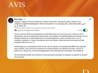 Aujourd’hui, je me concentre pleinement aider les professionnels ambitieux à identifier les leviers de croissance invisibles et passer à l’action, y compris dans des contextes complexes et incertains.