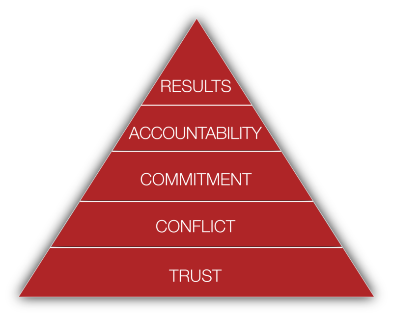 - Trust, Conflict, Commitment, Accountability, and Results.