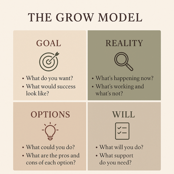 Each session is structured around the GROW model, providing a clear framework to move you forward:
